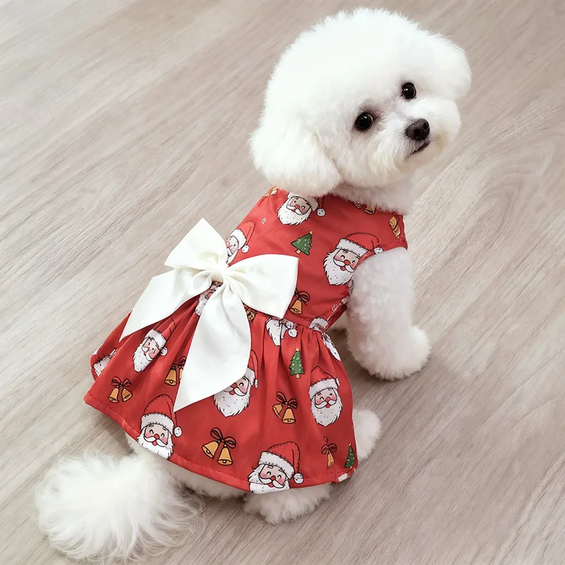 Feito com tecido leve, respirável e macio, o vestido garante liberdade de movimento e bem-estar para o seu cãozinho, seja durante aquele encontro especial, a sessão de fotos de Natal 📸✨ ou até mesmo no dia a dia festivo. A saia estampada confere elegância imediata, enquanto o laço delicado na parte superior adiciona um detalhe encantador que torna a peça ainda mais charmosa.